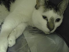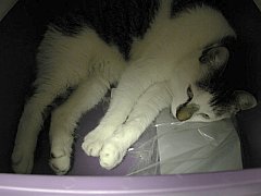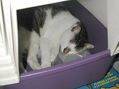 Clyde is pictured below.) We found Clyde asleep in one of the litterboxes